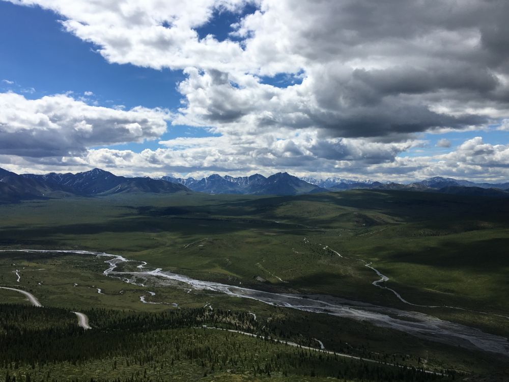 第三天,很早就起来了,Visitor Center 8点开门,我们7点半就在雨中等,我们是最早到的,最抢手是Discover Hiking,只有后天的,但是我们已经预定了那天在Fairbanks的活动,就只好放弃了。 买了下一天去Wonder Lake的shuttle车票,shuttle的终点站是Kantishna,那里只有几个旅馆,没有景点,而Wonder lake离迪纳里山只有28.5英里,是整个路上离迪纳里山最近的停车站。