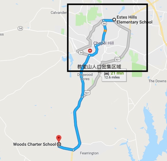 今天送孩子去Woods Charter学校上Camp,发现这个学校的位置非常偏僻,远离本镇人口集中的区域,对大部分本镇居民来说,交通实在很不方便。Woods Charter是公立特许学校,接受学区的教育经费支持,按理说应该面向教堂山学区所有学生开放。由于资源有限,这个学校通过抽签来选择学生。不管抽签的过程有没有猫腻,学校偏僻的地理位置,基本上就决定了学生的来源。只有那些父母有一个人(通常是母亲)在家专职照顾孩子的家庭,才有家长可以抽出时间来接送孩子上下学,就读这个学校。而这样的家庭,通常是收入比较高的白人家庭。