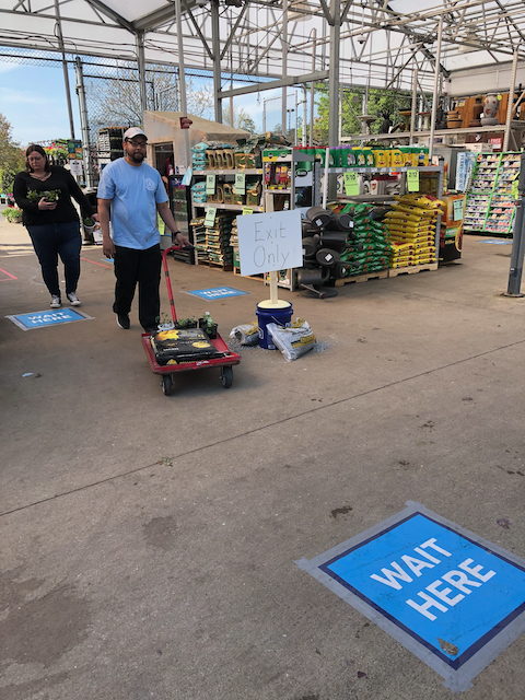 Lowe’s和两周前大不相同。首先,营业时间比以前缩短了。在玻璃大门上贴着告示,7天全部晚上7点关门。和平常相比,周一到周六提前2个小时,周日提前一个小时关门。在Lowe’s的花园购物区前放了一个小亭子,有一个员工站在那里,顾客需要先通过小棚子才能进购物区。戴口罩的顾客不少,大概占三分之一左右。看到别人戴口罩,我也不再犹豫,戴上了口罩和穿上了手套,走向那个小棚子。站在棚子边的Lowe’s员工拿着一个像手机一样的东西,好像是个检查员。我站在他面前,等待他检查。没成想,他什么也没做,就告诉我可以进去了。我有点儿纳闷儿,猜想是不是戴了口罩就可以豁免体温检查了。