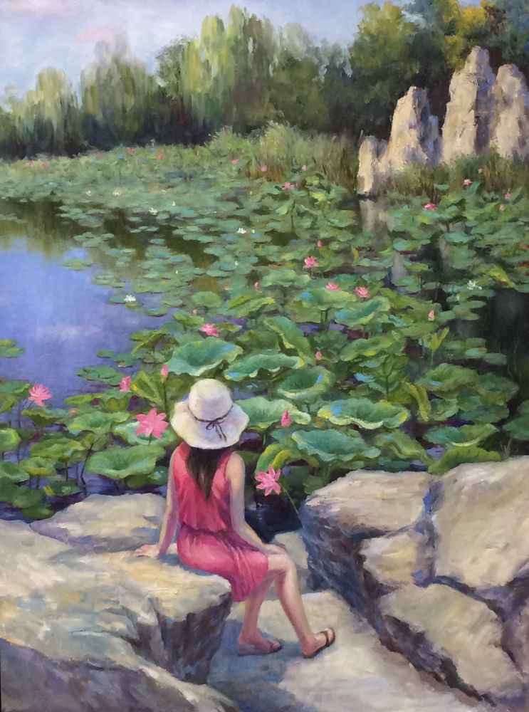 用色比较放松,笔法还是不够碎。昨天看视频说莫奈画他那睡莲也是多层画法--干了,再堆一层,没完没了。所以也不是像写生:$