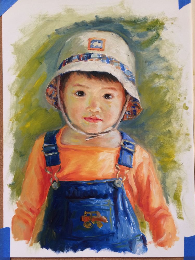 油画纸上练了一张,发现这幅难度其实高,脸部明度没什么差别,色相有差别。不过好玩儿啊!也画了三个小时呢!也继续!