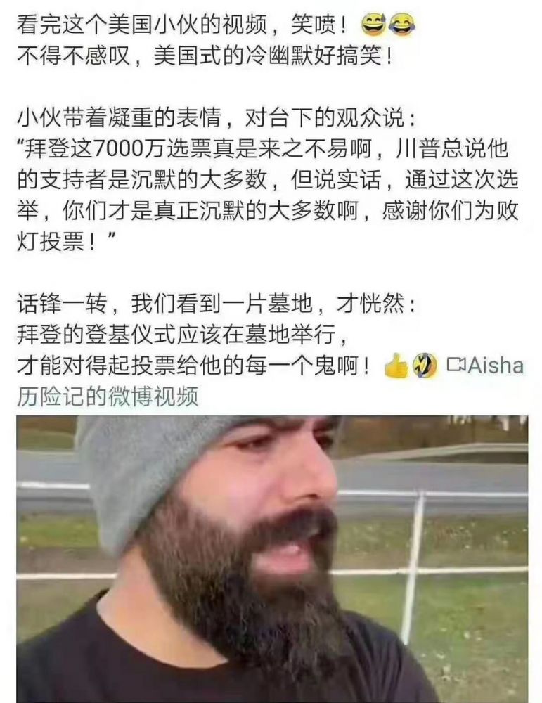 无怪乎拜登获得7400万张选票,比获得7300万张选票的川普多出100万张,且还在增加,并刷新前总统奥巴马所创记录,成为美国历史上得票最高的竞选人,这是美国的笑话,也是美国的耻辱。