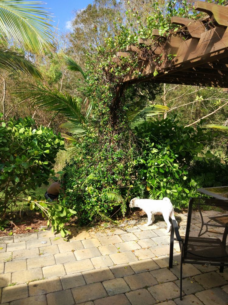 正在煮饭的时候,狗儿子一阵狂躁。 隔着玻璃望出去, 就看到一只硕大的螃蟹, 左举盾右举矛,从远远的后墙向着deck遥遥逼近。 还真是名副其实地横着走!