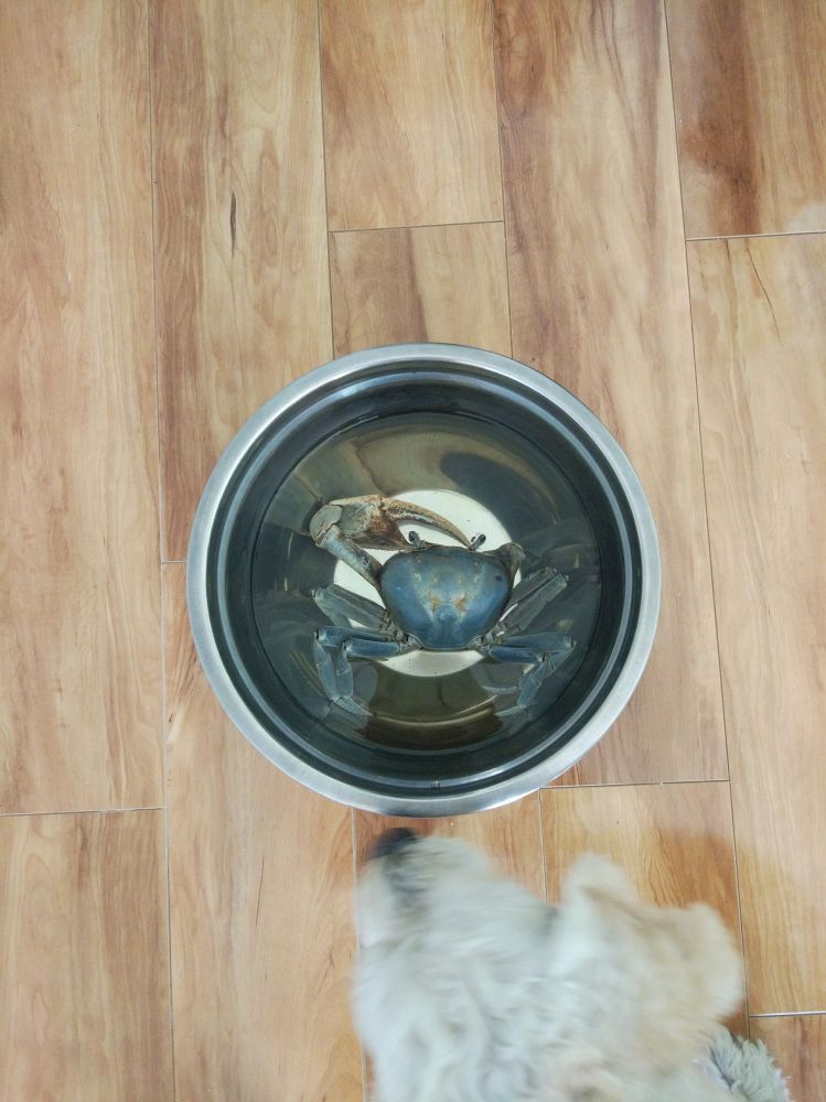 看着还泡在水盆里的已经死去了的螃蟹,我和他面面相觑,都弱弱地说“又杀了一个生!”