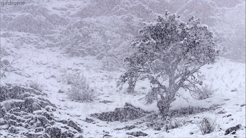 这时天上开始飘雪, 而且越下越大。北风也刮起来了, 冷风扑面。