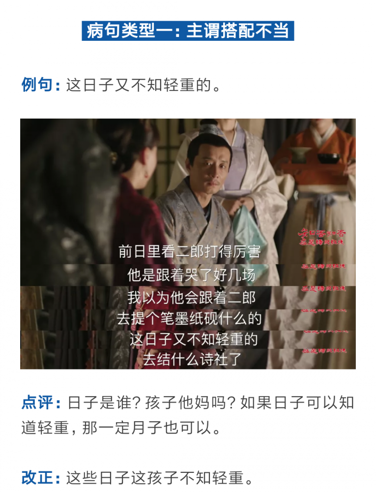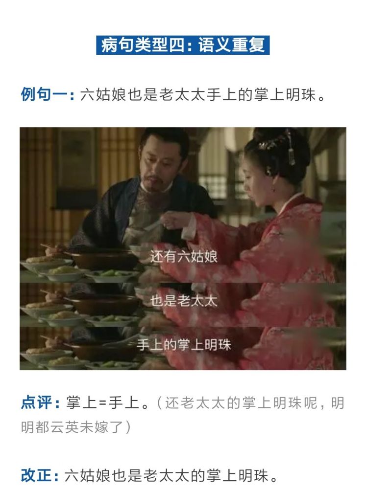最后她发出一声感叹:“整个电视剧,就是一个大型高考病句真题库!!”