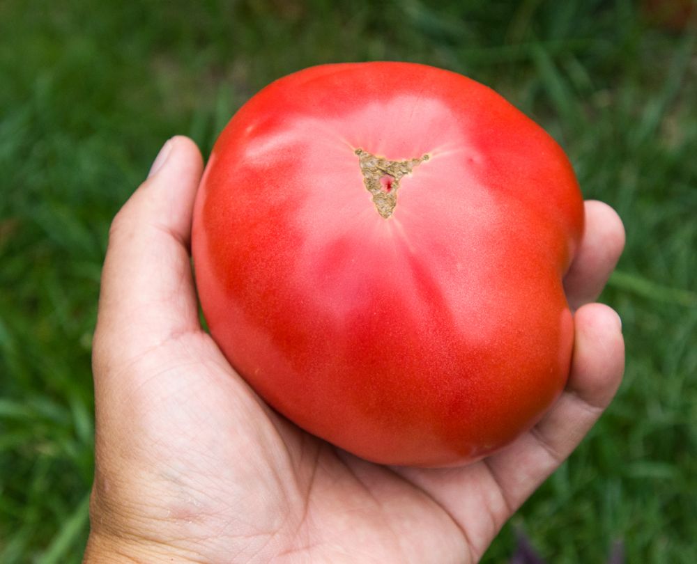 昨晚的收获(八月十四日)先收获了两个超大的西红柿