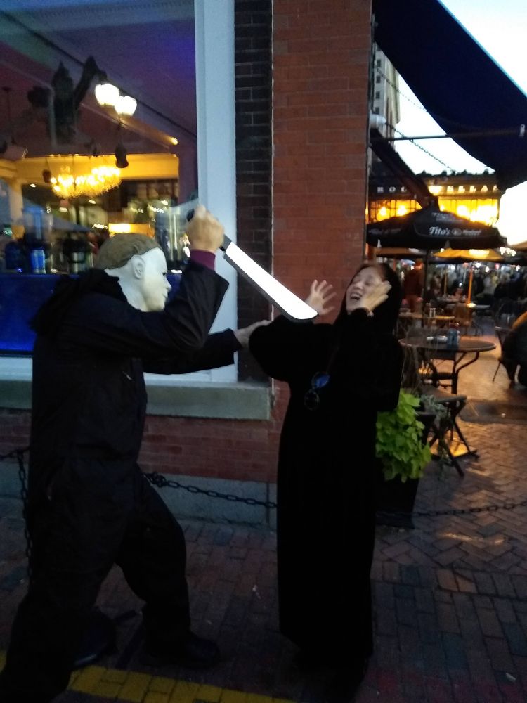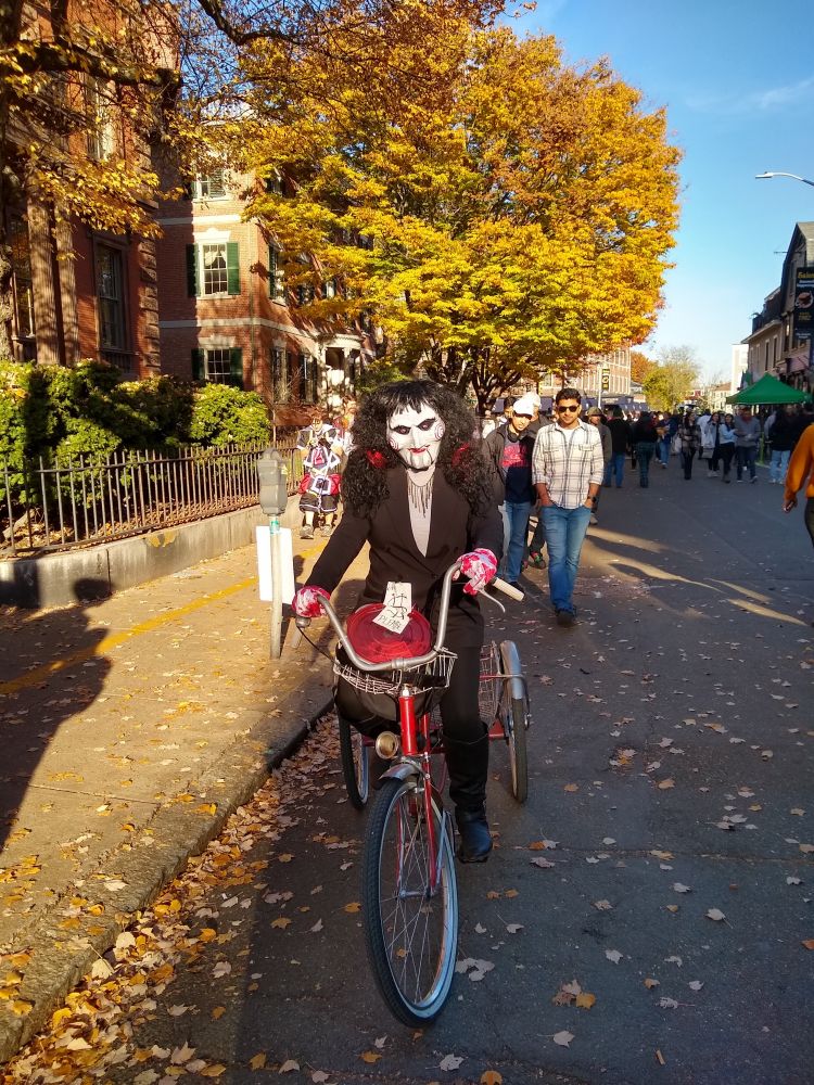 Halloween由起初颇具宗教色彩的节日到如今像快乐儿童节一样的万圣节,大人孩子都喜爱,由此引来商机无限,也带来了丰富多彩的创意。每年一进入十月份,从世界各地来麻州Salem的游客络绎不绝,尤其是疫情防控开放之后的今年,parking一位难求。当地市长为此欢迎并号召大家乘公交或骑扫帚到这闻名的女巫之城Salem“鬼混”。