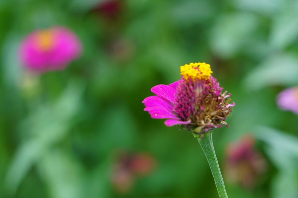 机警的鸟爸看见我探头探脑在观望,它嗖的飞走,飞到另一丛Zinnias 中,四、五只小小鸟扇着翅膀紧紧随后,带着那一团密不透风的吱吱喳喳叫声。
