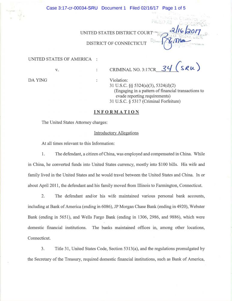 下面图一是美国康涅狄格州联邦检察官对英达的刑事犯罪起诉书的英文原文。