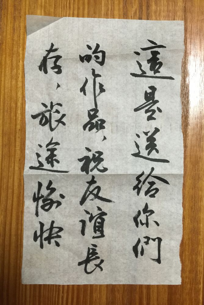 五天的印尼之行结束,我和土豆返回新加坡,休息一天后,晚上就开始打包行囊准备第二天早上搭飞机回国。整理好所有的行囊已经是晚上十点了,马老师刚回家,他敲门问我想要写什么字,我说不用了,但是他说他已经说过了,是一定要写的。