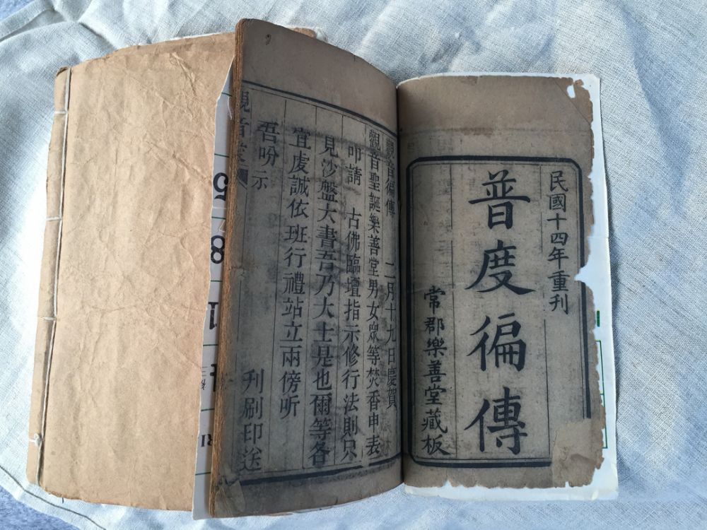 我小心翼翼地打开包裹,共剥开了四层,每一层都是一块精致的棉布,精心地包裹得很整齐,直到打开最后一层,才看到是五本已经非常古旧的线装经书,是民国时期手工印制的,泛着岁月的黄,有两本的书边已经脱落。看着这些经书,我突然感到很庆幸:幸好我这几年算是学了一点皮毛,知道了这些经书的无比珍贵。