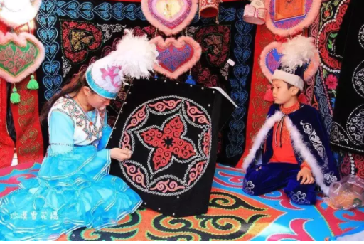 哈萨克族工艺美术丰富多彩。妇女会制作毡房、各种毡制品、毛制品和服饰。不少男子会制作木器、铁器和骨器。用金银、玉石制作的各种装饰品造型艺术水平较高。哈萨克族爱好音乐,能歌善舞。民间乐器有冬不拉,杰特肯,霍步子。