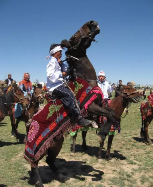 赛马是哈萨克人十分喜爱的一项传统体育活动。赛马有赛走马和赛奔马两种。赛走马,是比马的速度、耐力、稳健。骑手一般都是成年人。