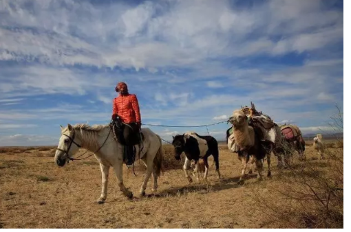 日落前起身行至深夜,每走一段可以稍事休整,可以说骆驼在哈萨克族人民生活中起着很大的作用。现代部分牧区仍然利用马、骆驼。