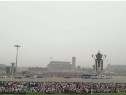 天安门广场聚集了超过10万的群众 观礼今天的升旗仪式
