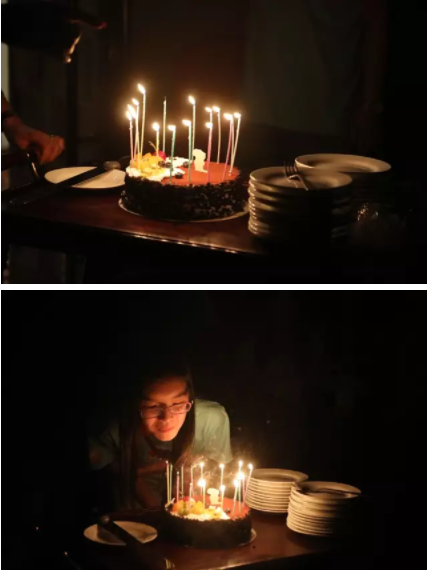 几轮热闹的游戏之后,我们有一个熄灯神秘环节,室内一片漆黑,鸦雀无声,门被慢慢地推开,石主席和庞妈妈唱着生日歌,推着生日蛋糕结伴缓缓走来,原来是我们的一位小美女今天生日!