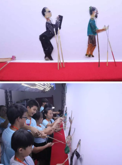 营员们在参观之余,还学习制作皮影,在银幕上操作自己刚刚做出来的皮影人物。