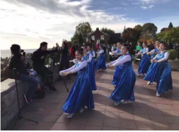 西雅图的天气变化无常,一阵风起,逐渐冷了起来,一会风越发大了,女孩子们好似没有感觉到,仍然一丝不苟地按照拍摄的要求,一遍遍起舞……