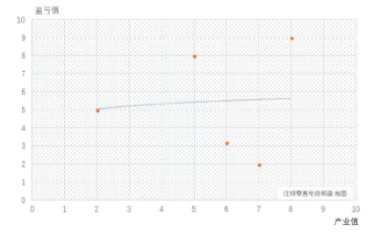 按照“盈亏平衡面”的核心原理制做了一张简易图,图中的横纵坐标值替代了原来“盈亏平衡点”的销售额和成本,分别是“盈亏值”和“产业值”。