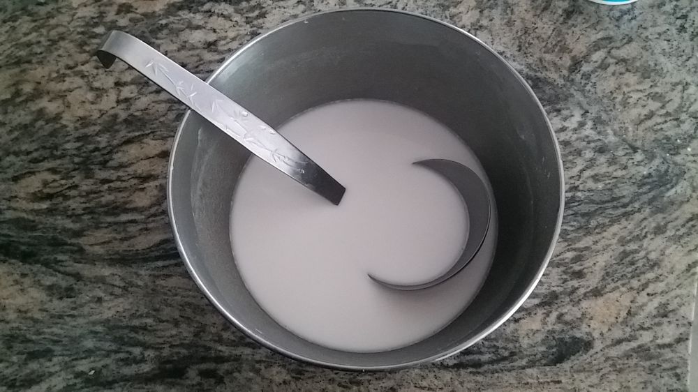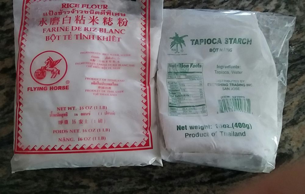 1. 粘米粉100克. 生粉10克,清水330克,搅拌均匀。(一人的食量)