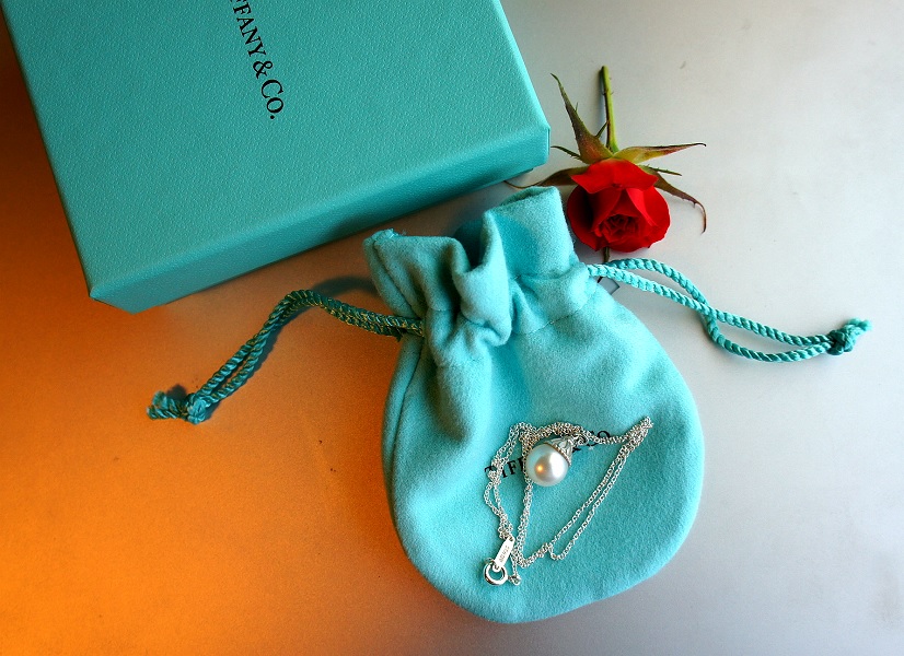 然后这是最近专为多多生日订的 TIFFANY 银项链,Pendant in Sterling Sliver with a freshwater cultured pearl.