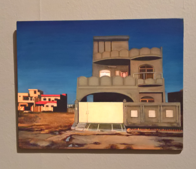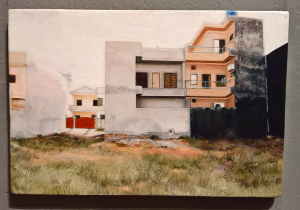 这位的画都是小件。一进展厅,还以为是照片展,看了前几幅,还以为是照片,又看了一稍大点幅(A5?,比A4小很多),离近了才发现是油画,又重头开看。