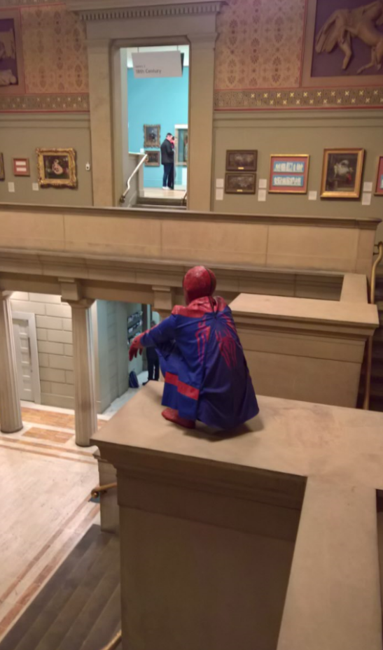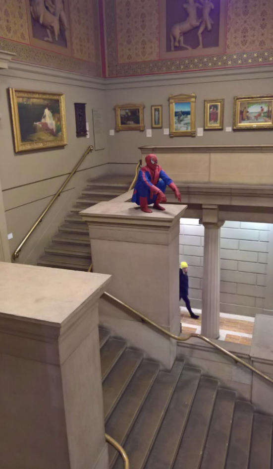 下面这个SpiderMan立在正门的楼梯旁,是大曼城本地的Pop Art艺术家Hetain Patel的作品。在这放着好几年了。