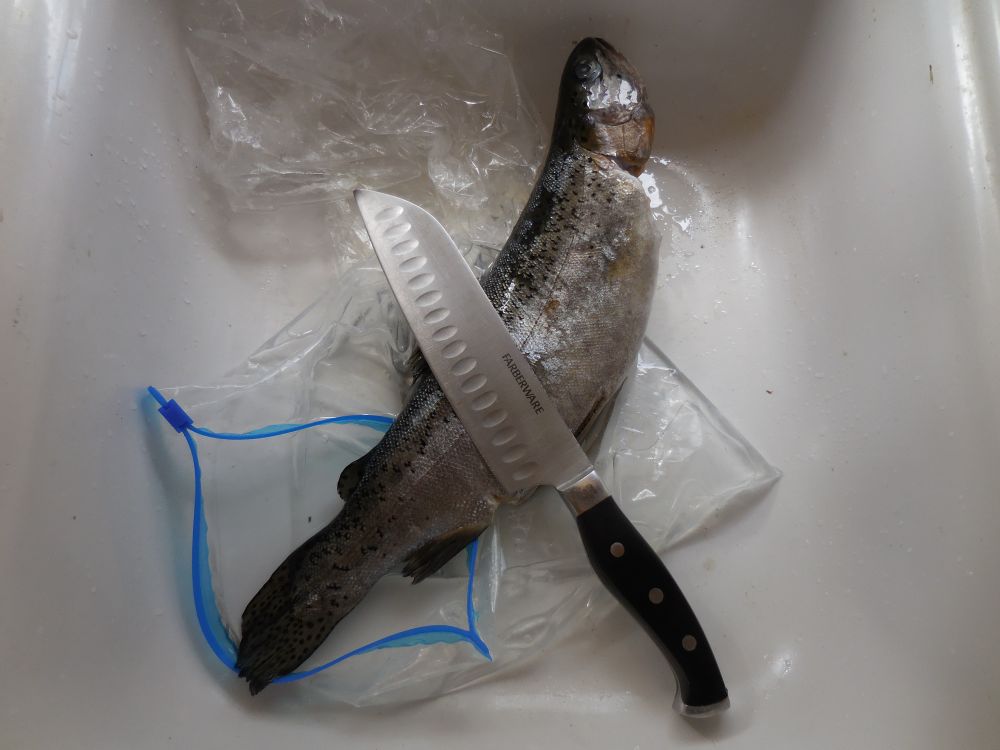 周一,果然带来了两条,清理干净, 收拾好了的冻鱼。