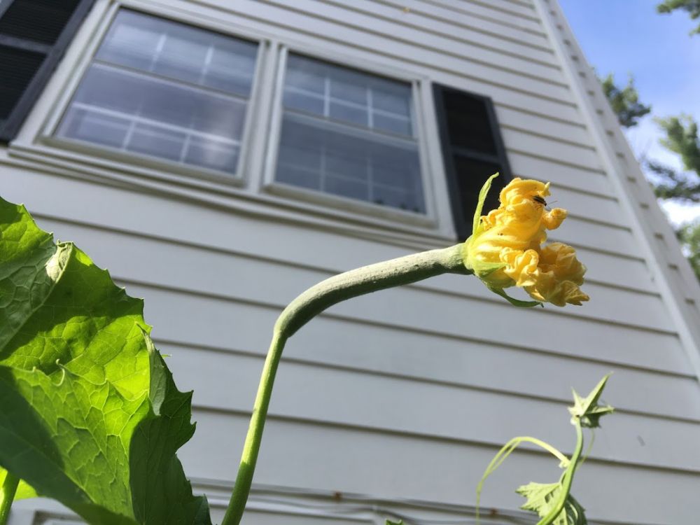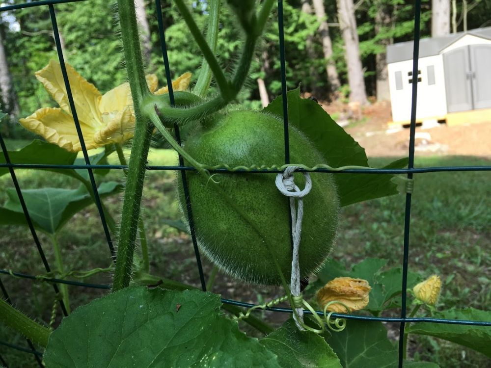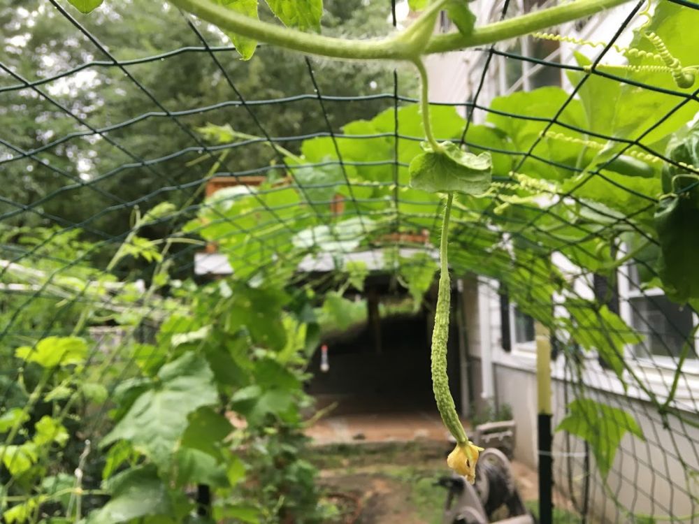 第一朵丝瓜的雌花,是的,还有讨厌的黄瓜虫