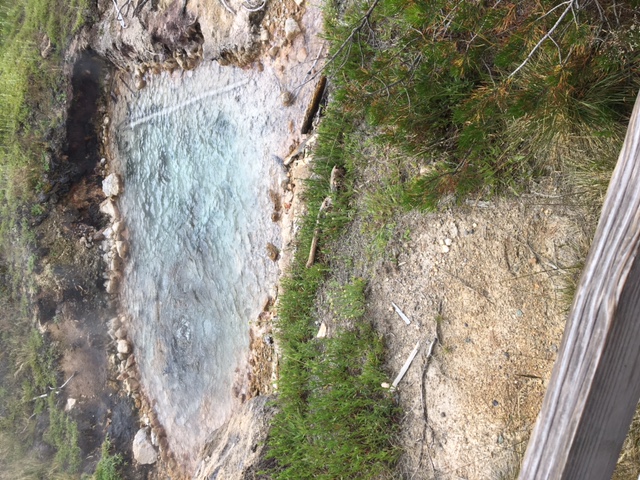 Great Fountain Geyser 和Upper Geyser Basin: 这个景点离老忠实泉很近,还有一个特别蓝的温泉池,颜色很好看,需要花十几二十分钟的时间走一圈栈桥。