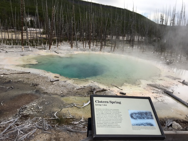 Madison 这个区没有特别好看的景点,有一个ArtPaint Point,可以去看看,但相对于后面的Norris,那就是小巫见大巫。 Norris Geyser Basin: 这个景点里面很大,而且分两边,需要走好多路,我们随机选择了左边一条1.6 Mile的Trail,人不多,走走还挺有意思,只是有的地方硫磺味道较重,尤其是风向不对时,很冲鼻。右边有一条短Trail,景色很直观,若时间有限,可以走这个。