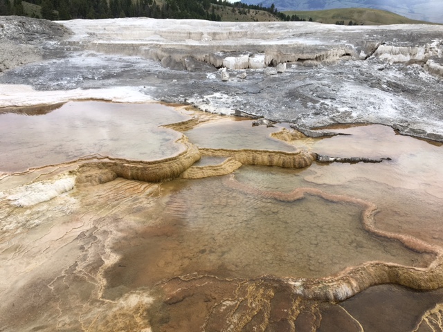 Mammoth Hot Springs (North West): 这是个比较经典的地方,而且地方比较大, 有餐厅、加油站、洗手间等,景点是需要走点山路的,沿着栈桥爬到山顶看全景,感觉还不