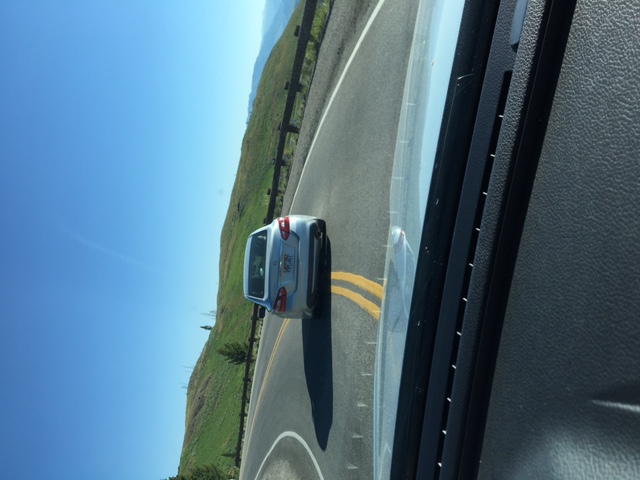 去Lamar Valley,这是观察野生动物的区域,清晨和傍晚很容易碰到野生动物。有一段山路还是挺险峻的, 看我们前面的车是如何开的。