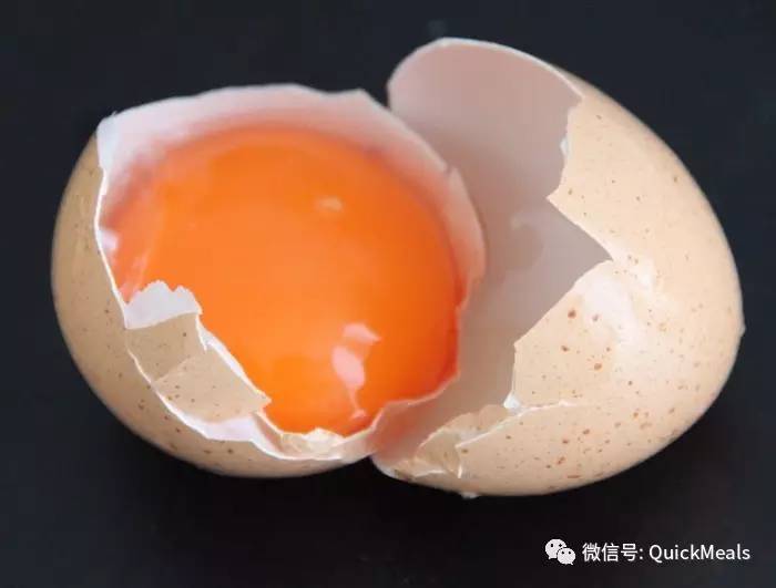 小心磕破鸡蛋,用两半鸡蛋壳小心地盛住蛋黄,把蛋白倒到另外一个碗里。新鲜的鸡蛋,蛋黄是深黄色的。