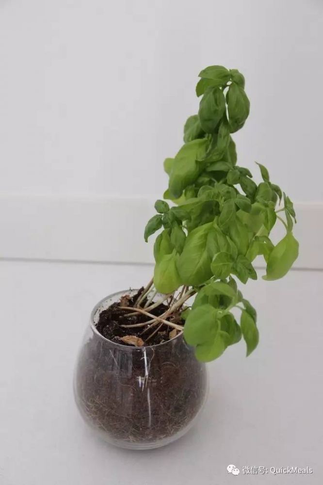 家里用大酒杯养了一棵罗勒叶(九层塔),时不时得揪些叶子做个菜,不然酒杯不够地方了。