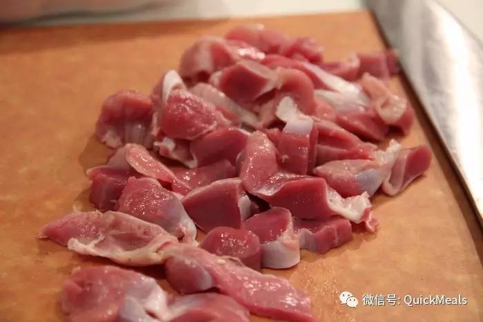 鸡胗切片。 不要切太薄,不然没有嚼头。