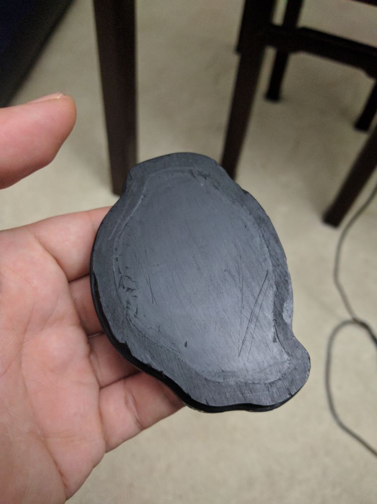 乌木乌黑发亮,手感细腻,却可惜没有包浆,不能享受手头把玩的乐趣。且放着吧,也算是件标本。