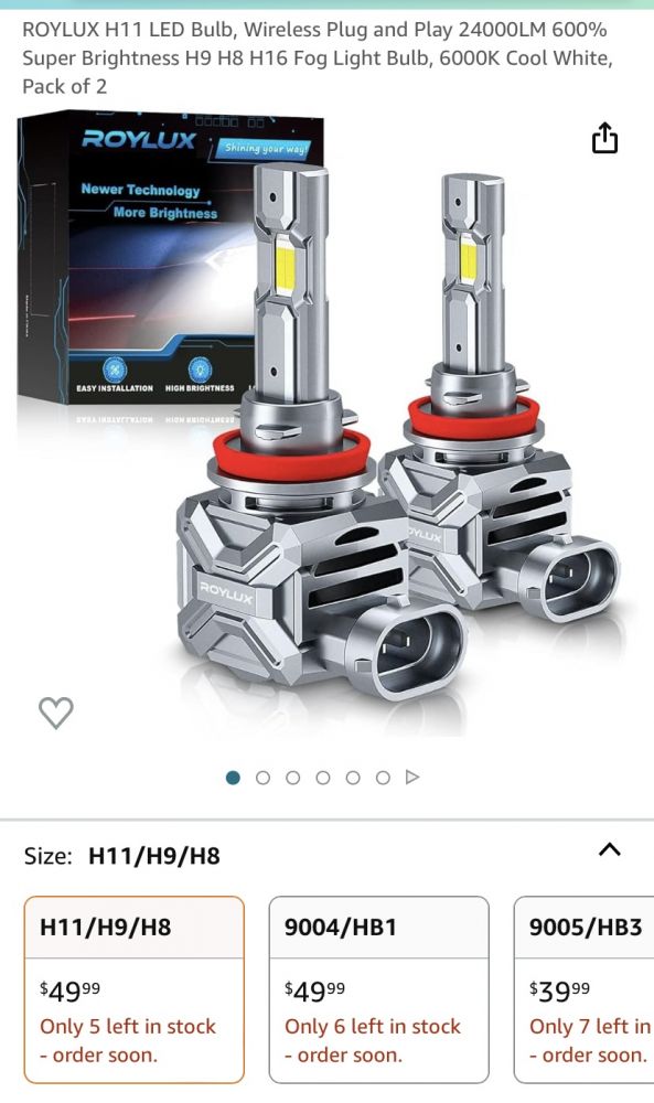 之前买的led灯主观感受不够亮,这次又下单了好几款LED,买了个照度表测量。实测发现,中国厂家的LED灯的总照度(lumens)虚标,但那个300%、600%的相对(于Helogen)亮度还基本靠谱。用了两种测量方式:一种是加上汽车引擎在转时的额定电压14.2V,在距离灯25ft的地方测量lux值(每平方米的lumens数),另一种放到汽车lowbeam灯罩里距离25ft测紧贴地面的lux值。下面这款号称600%亮度[