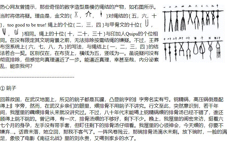 google一看, 武汉的排骨铫子和山西交城一带用的炒菜铫子一样。又够您花时间考证武汉与交城的渊源了,反正您大概也不花时间在耶稣基督和永生上------有的是时间浪费,您真奢侈!