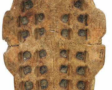 当然,烧灼的力度与位置关系度更大。右图为龟甲背面实际烧灼的痕迹。根据出土甲骨上所呈现内层焦黑、外层黄褐的灼痕研判,商人应是以炭火来烧灼甲骨,内层是灼烧的接触面,外层则是受热波及区。《史记?龟策列传》里有,荆支卜之,灼以荆若刚木。据此,商人占卜施灼的炭火来源可能是一端已烧成积炭的荆条或硬木枝条。进入青铜盛世后,不难想象会有人代之以加热的青铜棒。台湾学者相当细心,曾有人摹仿古人,反复试验对比,以期验证实际效果。结果发现,用青铜棒施灼总有散热过快的问题,不仅容易导致灼痕焦黑,灼出的兆纹也不明显。相比之下,硬木枝条能有效地灼出兆纹,且效果与出土甲骨相似。成功灼出清晰兆纹的诀窍在于保持施灼点固定,同时均匀缓慢地以嘴吹气,让枝条顶端始终维持高温。倘若枝条燃尽或不慎熄灭,立即换上另一根,直到甲骨产生裂纹为止。