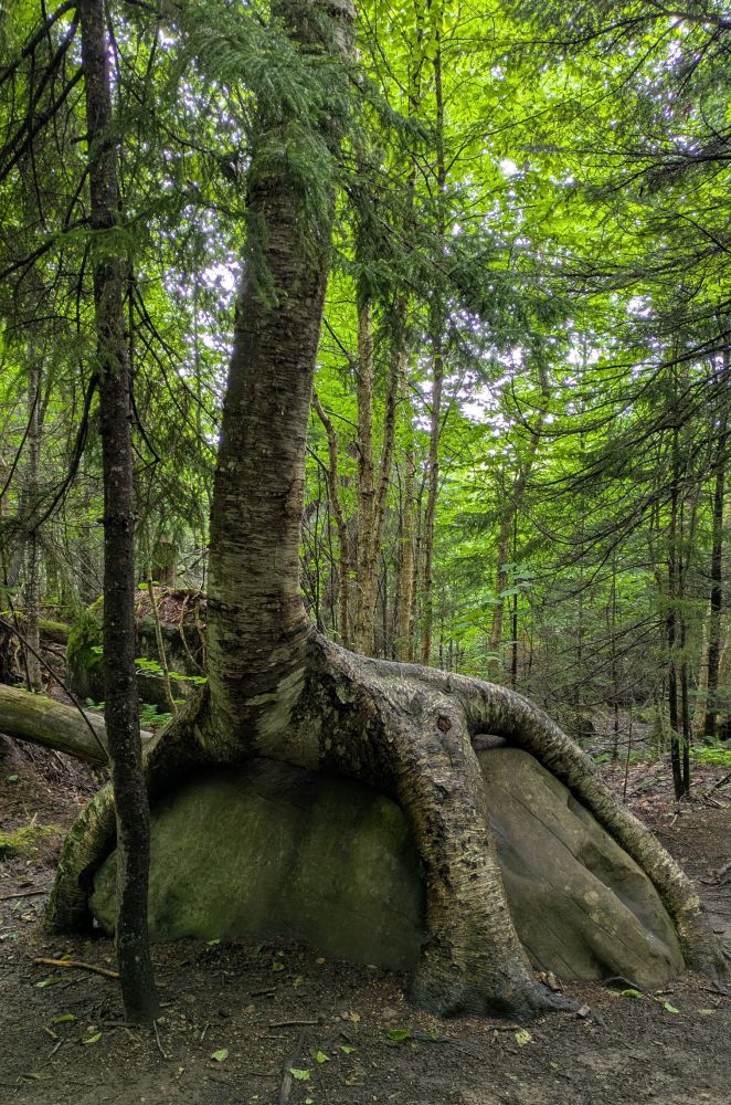 一路上看到了好多长在岩石上的树,景象颇为壮观。这棵树不大,但好象想把石头抱起来呢。我严重怀疑傅抱石的父母在他还没出生的时候来过这里!