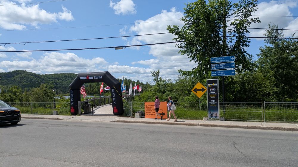 回程的时候,我们想到一个旅游景点去打一下卡。但是跟着GPS转来转去没找到地方,而且发现附近停车的地方很难找。开着开着我就觉得不对:怎么这么多人骑车?怎么看着这些人象铁三运动员呢?再开一段,发现果然是有铁人三项的赛事,在路边都看到铁人三项的标记了,是特朗布朗半铁。