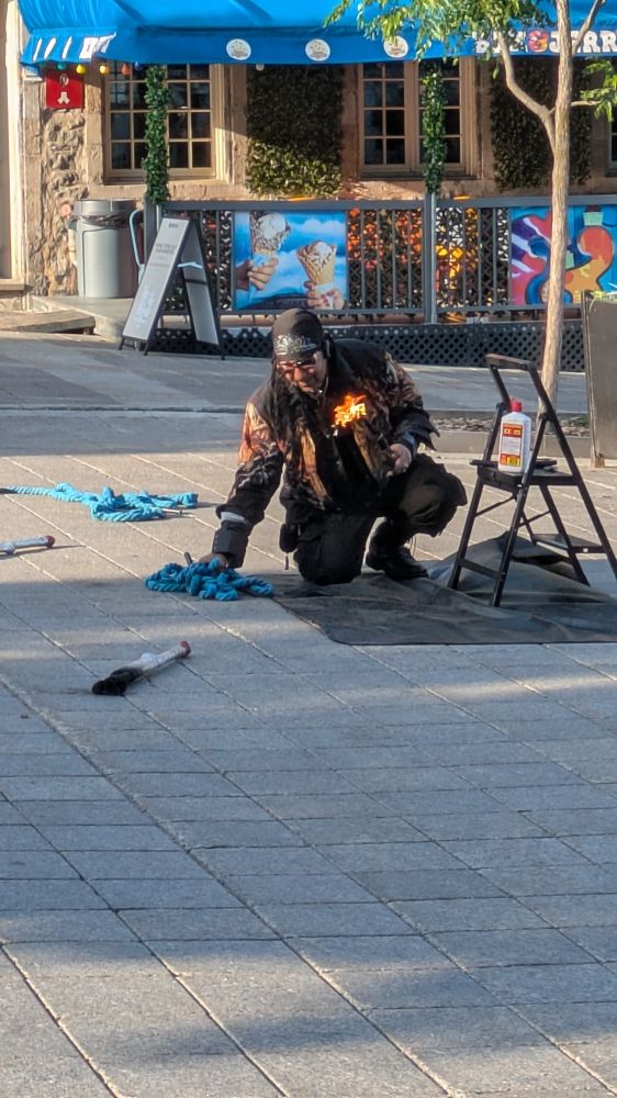 街头表演的艺人,点起了火把。可惜我们没有时间等他做准备工作。