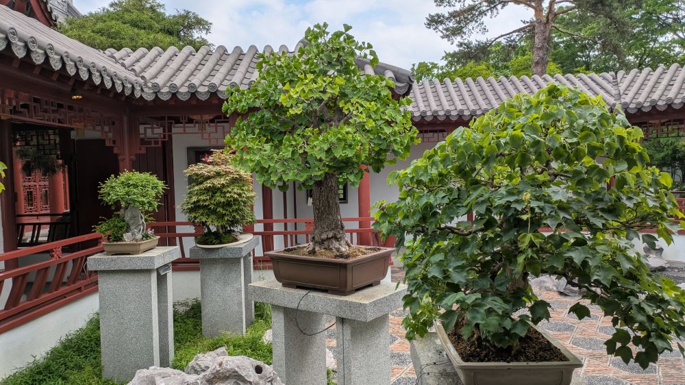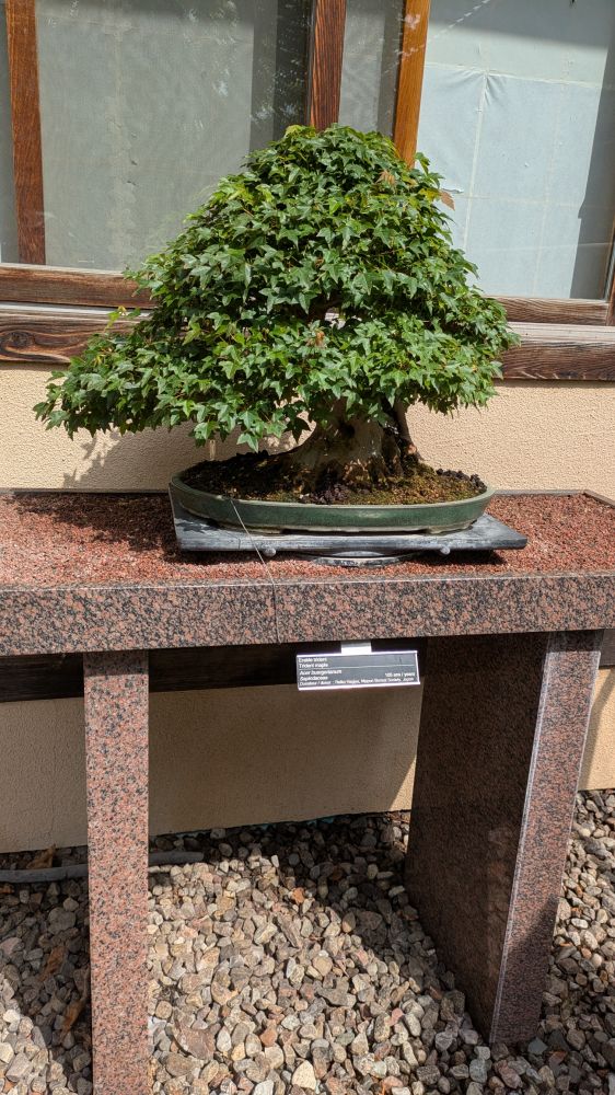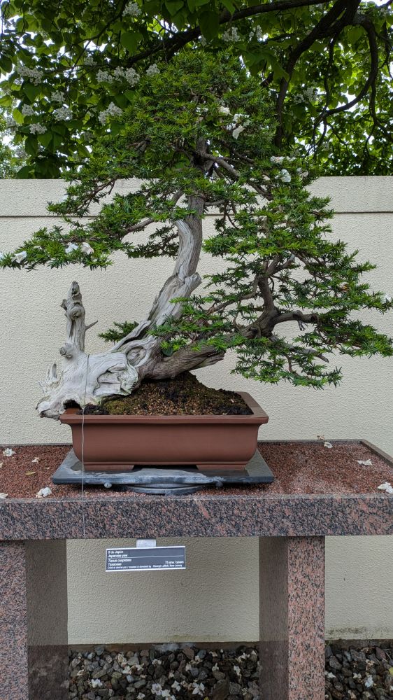 日本植物园里的盆景盆景年龄比较长,最高寿的一百多岁。