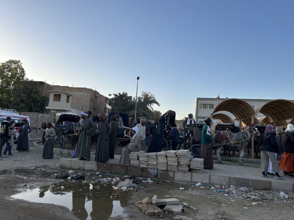 旅游大巴开到神庙附近停下来,停车场上很多马车夫聚在一起。地上的脏水和垃圾真的是惨不忍睹。中间一度还有一堆人围在一起,不知道什么原因大声吼叫,我还以为要打起来了,后来没事。埃及人经常这样在街上大喊大叫。