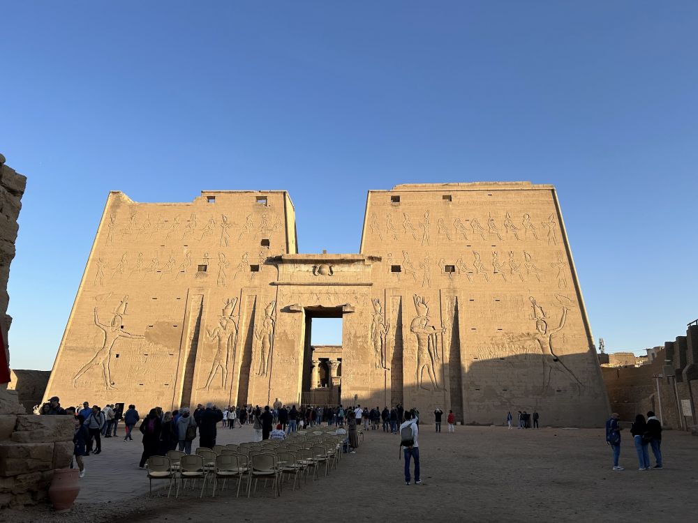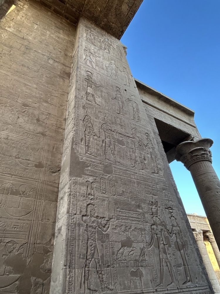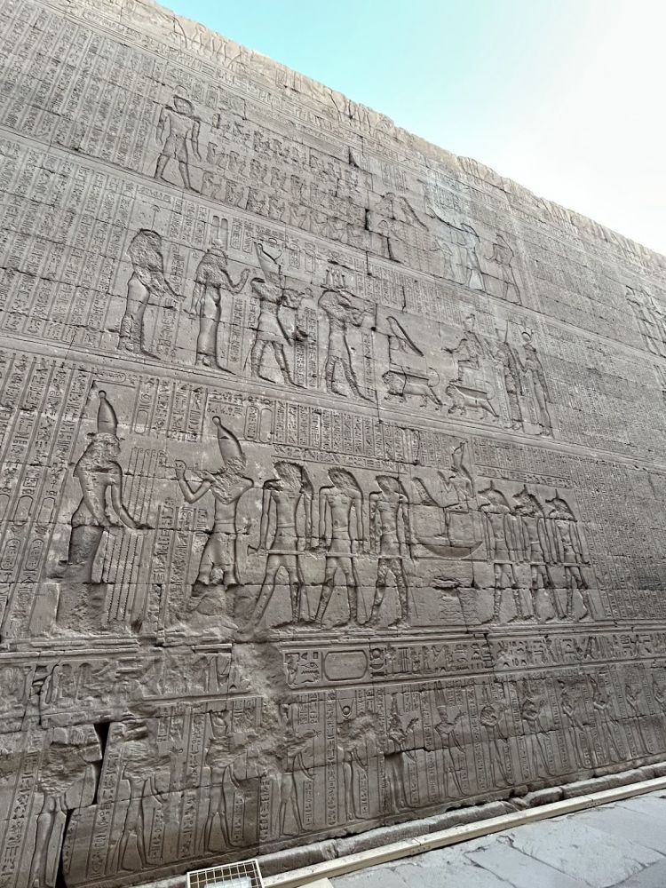 埃德夫神庙正面看上去就是一堵高墙,上面有一些浮雕。