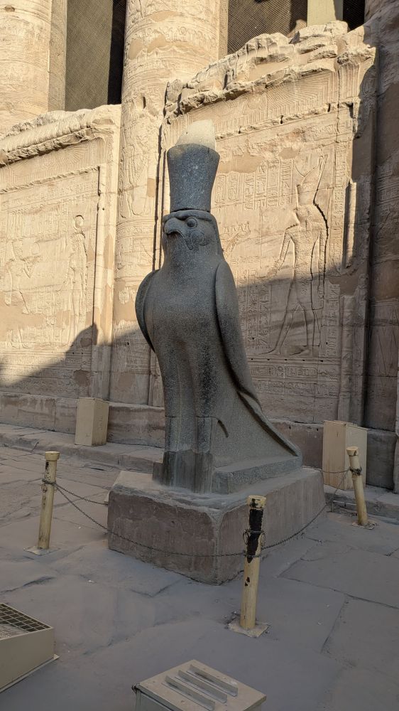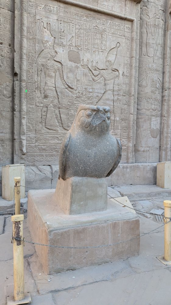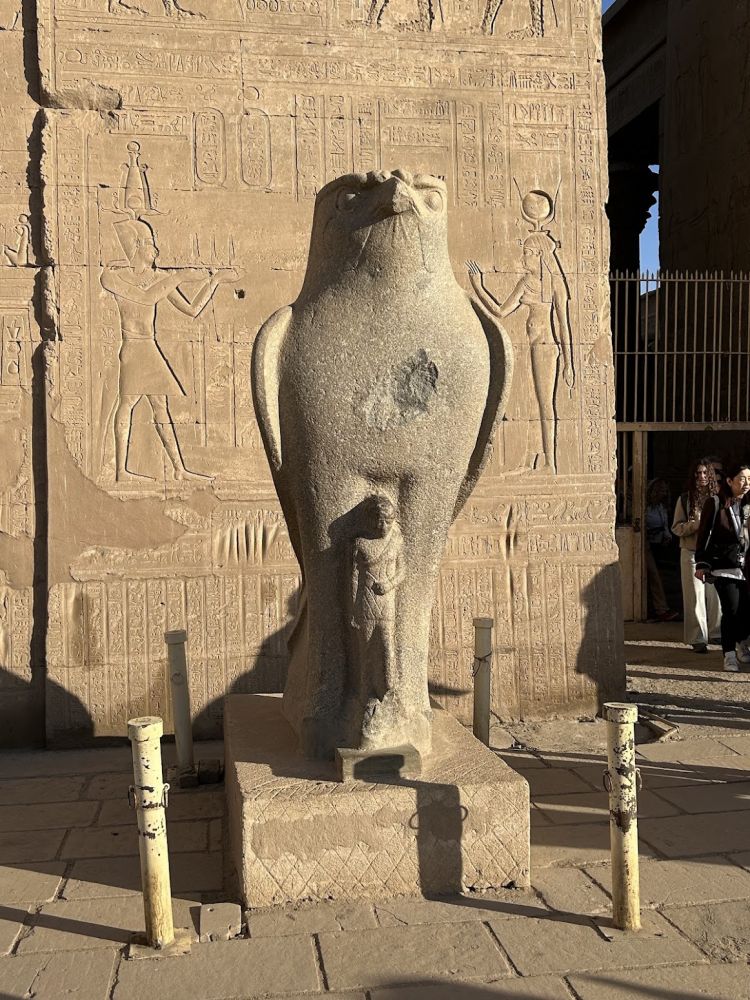 下面这个雕像前面站的是法老,表示埃及神庇护法老的意思。这猎鹰也太高大了,有点吓人了。