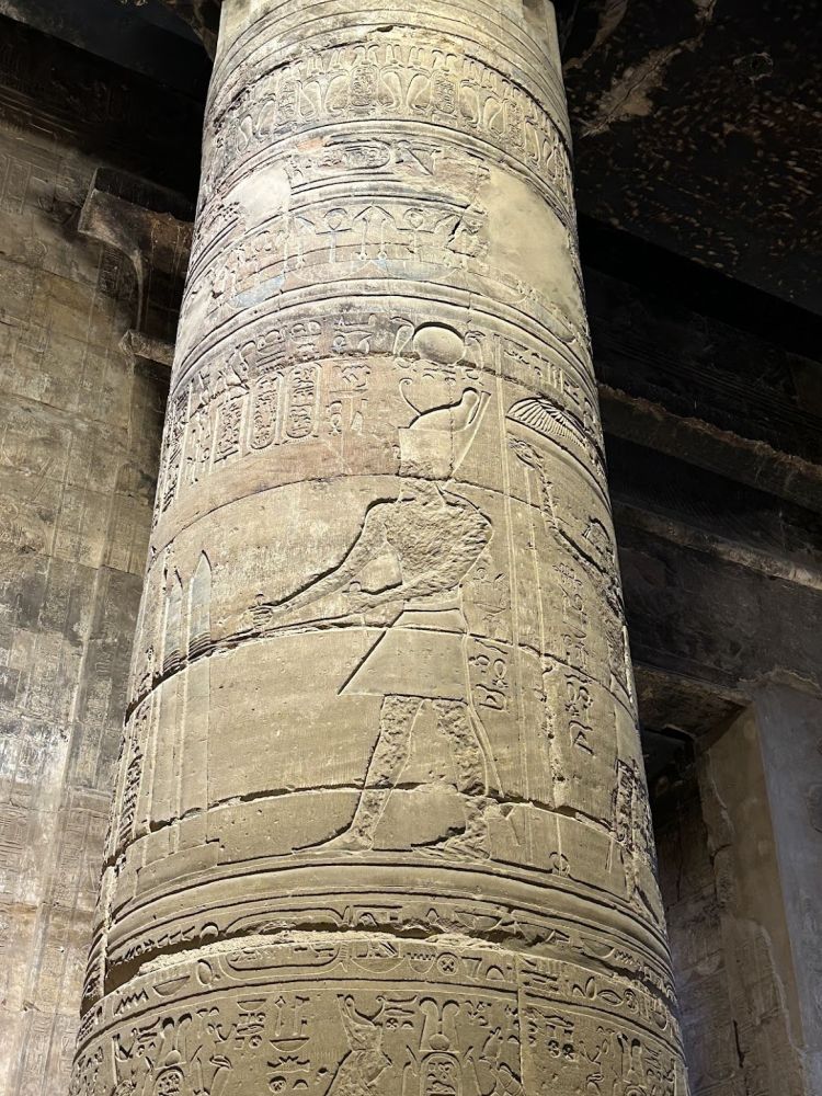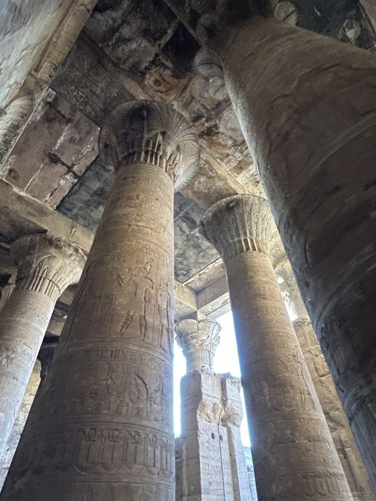 再往里走又有很多高大的石柱,不过好像没有卡纳克神庙的高。神庙的大圆柱上也都刻着浮雕,这和希腊的神庙很不一样。