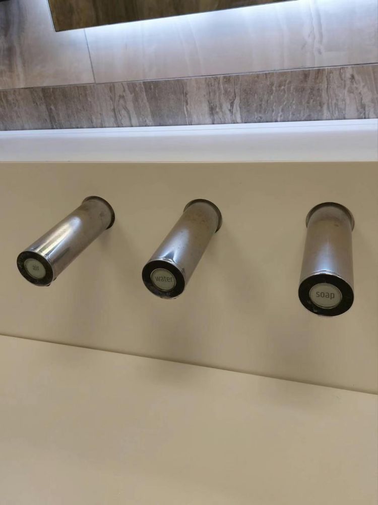 清晨五点半:搭上去那不勒斯的头班火车,转乘巴士去机场。那不勒斯国际机场卫生间的洗手池“三件套”:洗手液,自来水,电吹风“欢聚一堂”,如此便捷,免触碰,避免挂式吹风机“流汤折水”的卫生设置,应当推广给全世界。